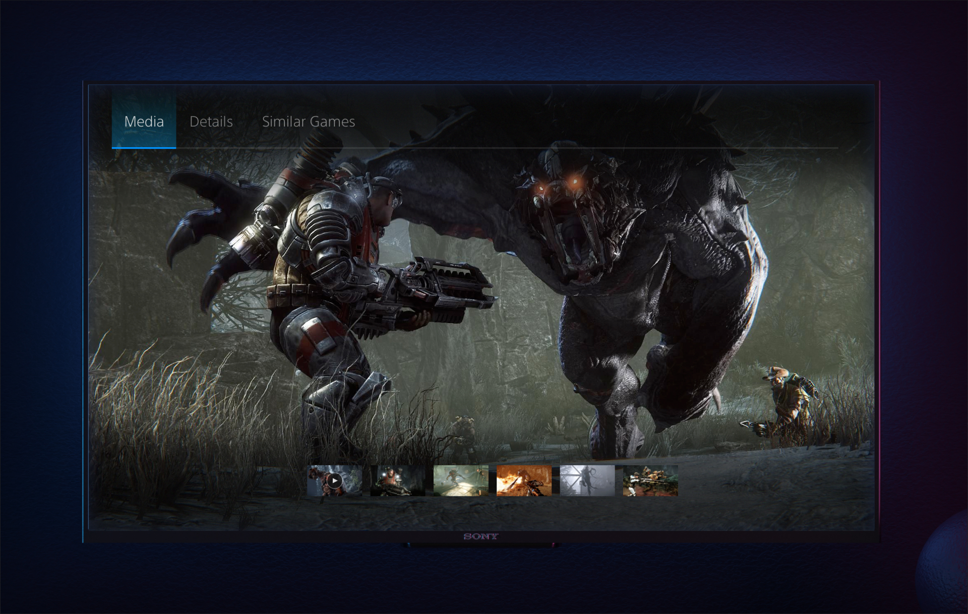 It was important to make the UI of the app itself relatively neutral, while still bringing in branding elements from the greater PlayStation™ brand: typefaces, accent colors, iconography, etc. This neutral approach would allow content to be pushed forward but also give us more scalability to other platforms, outside of the console.
