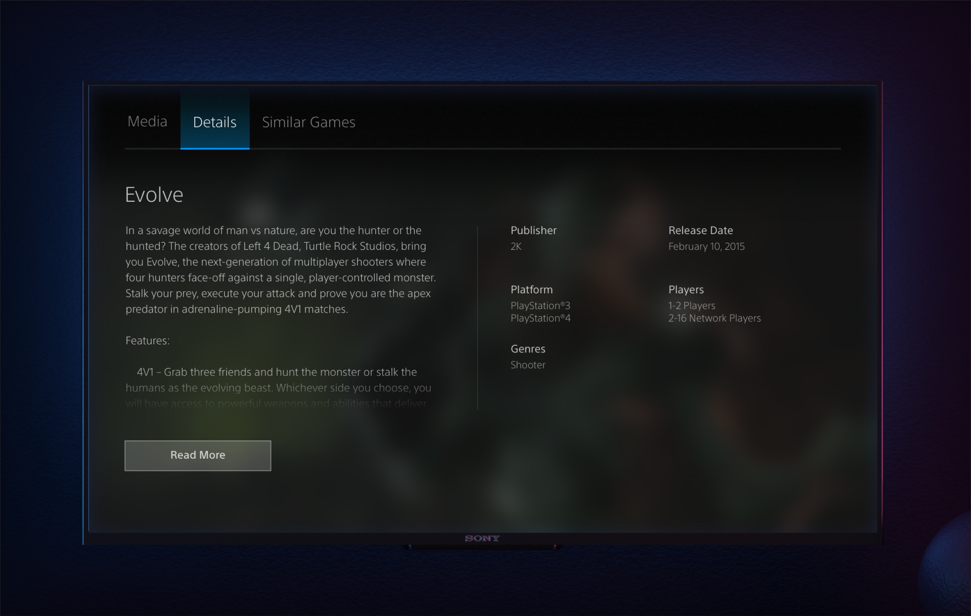 From a visual design standpoint, I felt our visual design should showcase our content as the primary visual elements in the UI. This was done in order to imply a sense of immersion within the app and to invite the user to play rather than buy like a storefront might (PlayStation™Now is a subscription service much like Netflix).